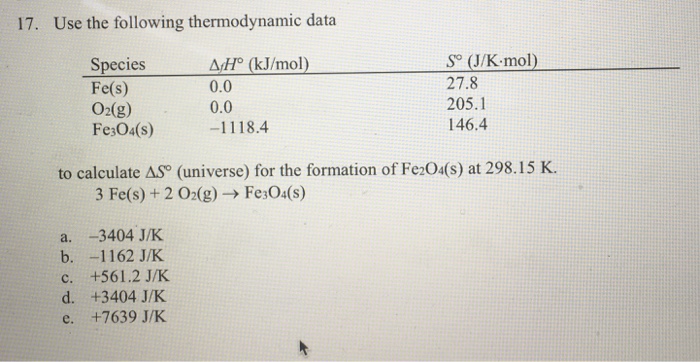 Solved Use The Following Thermodynamic Data To Calculate Chegg Com